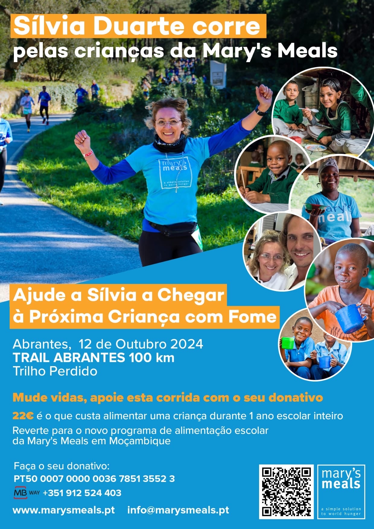 A Sílvia correu 100 km no Trail Abrantes 100 pelas crianças da Mary’s Meals, até 13 de novembro vamos converter cada passo em refeições para as crianças da missão da Mary’s Meals em Moçambique.