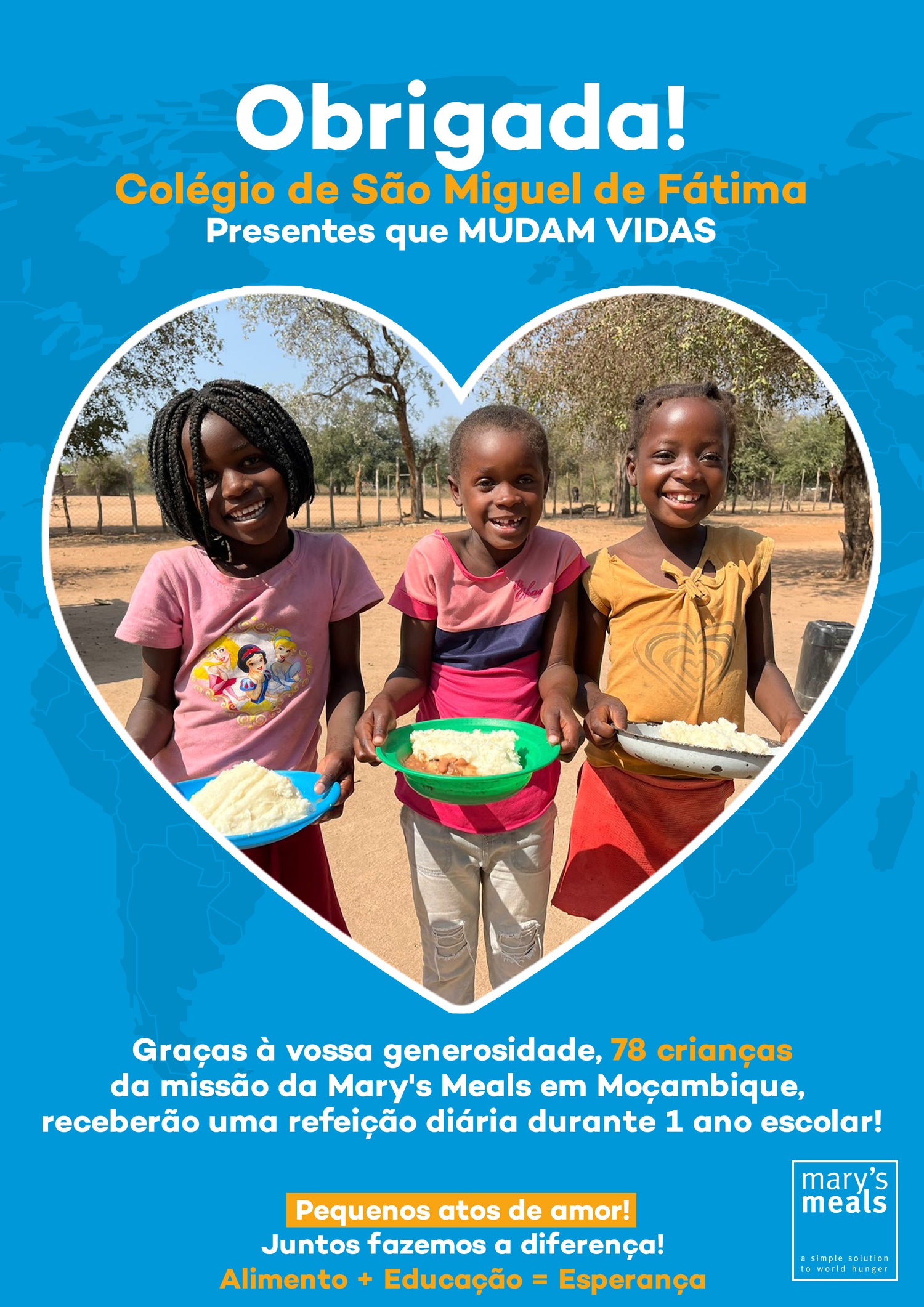 Graças à vossa generosidade, 78 crianças da missão da Mary's Meals em Moçambique receberão uma refeição diária durante 1 ano todos os dias de escola!