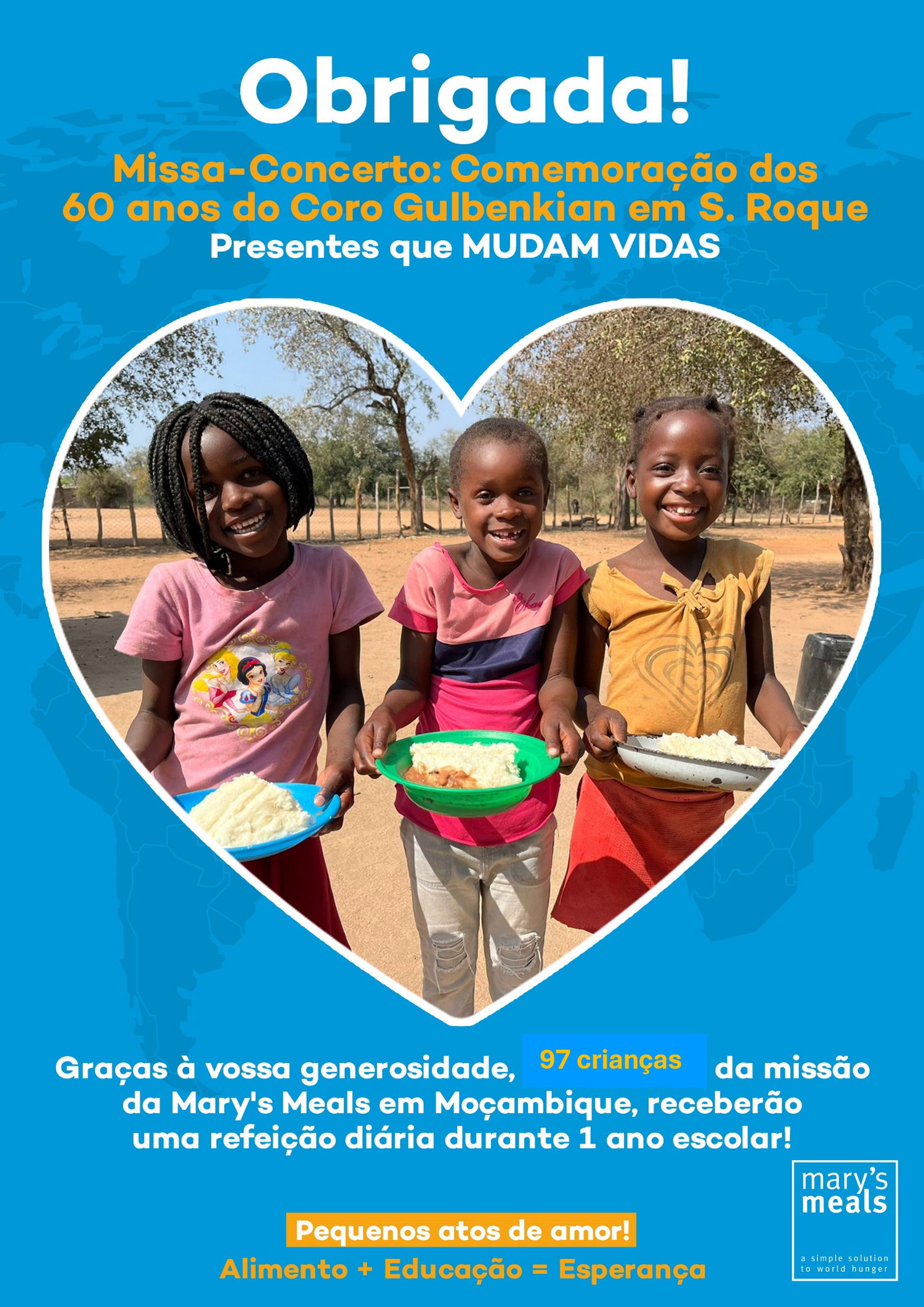 No dia 25 de janeiro, tivemos a Missa-Concerto em S. Roque organizada e oferecida às crianças da Mary’s Meals pelos extraordinários e talentosos voluntários do Coro da Gulbenkian, que celebrou 60 anos!